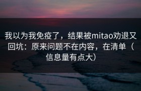 我以为我免疫了,结果被mitao劝退又回坑:原来问题不在内容,在清单(信息量有点大) 引子:以为自己...