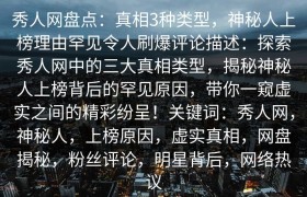 秀人网盘点:真相3种类型,神秘人上榜理由罕见令人刷爆评论描述:探索秀人网中的三大真相类型,揭秘神秘人上榜背后的罕见原因,带你一窥虚实之间的精彩纷呈!关键词:秀人网,神秘人,上榜原因,虚实真相,网盘揭秘,粉丝评论,明星背后,网络热议