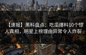 【速报】黑料盘点:吃瓜爆料10个惊人真相,明星上榜理由异常令人炸裂
