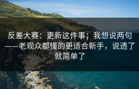 反差大赛:更新这件事;我想说两句——老观众都懂的更适合新手,说透了就简单了 每次有更新,总有两种声音...