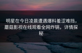 明星在今日凌晨遭遇爆料羞涩难挡,蘑菇影视在线观看全网炸锅,详情探秘